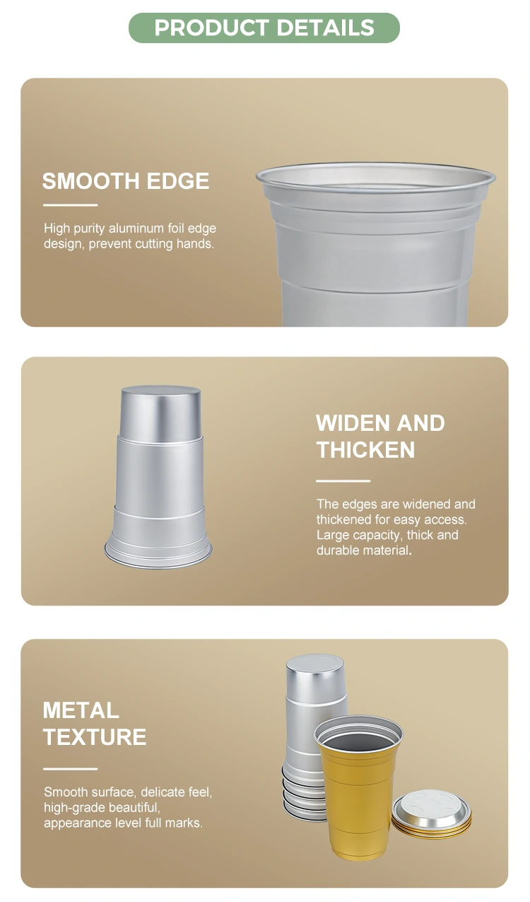 ປະໂຫຍດຫຼັກຂອງຜະລິດຕະພັນນີ້ແມ່ນຢູ່ໃນໂຄງສ້າງທີ່ທົນທານແລະນ້ໍາຫນັກເບົາແລະການນໍາໃຊ້ທີ່ສົມບູນແບບຂອງມັນໃນທົ່ວສະຖານະການຕ່າງໆ: ບໍ່ພຽງແຕ່ທົນທານຕໍ່ຄວາມກົດດັນແລະການຜິດປົກກະຕິ, ງ່າຍຕໍ່ການພົກພາໄປມາແລະການຂົນສົ່ງເຫຼົ່ານີ້ 20oz Disposable Aluminum Cups Simple Aluminum Drink Cups, ແຕ່ມັນຍັງສາມາດຈັບຄູ່ກັບຝາປິດປະທັບຕາຕ່າງໆເຊັ່ນ: ການປົກຫຸ້ມຂອງອາລູມິນຽມທີ່ເຫມາະສົມສໍາລັບການຮົ່ວໄຫລຂອງຄາເຟ, ການປົກຫຸ້ມຂອງອາລູມິນຽມທີ່ເຫມາະສົມສໍາລັບ foil. ຮ້ານຄ້າ, bars, camping, ກິດຈະກໍາກິລາ, ແລະໂອກາດອື່ນໆ. ນອກຈາກນັ້ນ, ພວກເຮົາໃຫ້ບໍລິການປັບແຕ່ງຢ່າງເລິກເຊິ່ງຕັ້ງແຕ່ສີ, ການພິມໂລໂກ້ຈົນເຖິງການພັດທະນາແມ່ພິມສະເພາະເພື່ອຕອບສະຫນອງຄວາມຕ້ອງການສ່ວນບຸກຄົນຂອງຍີ່ຫໍ້, ແລະມຸ່ງຫມັ້ນທີ່ຈະສະຫນອງການແກ້ໄຂທີ່ເປັນມິດກັບສິ່ງແວດລ້ອມແລະມີຄຸນນະພາບສູງໃຫ້ທ່ານເປັນທາງເລືອກສໍາລັບຖ້ວຍຖິ້ມແບບດັ້ງເດີມ.