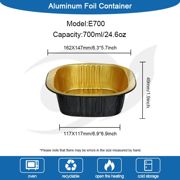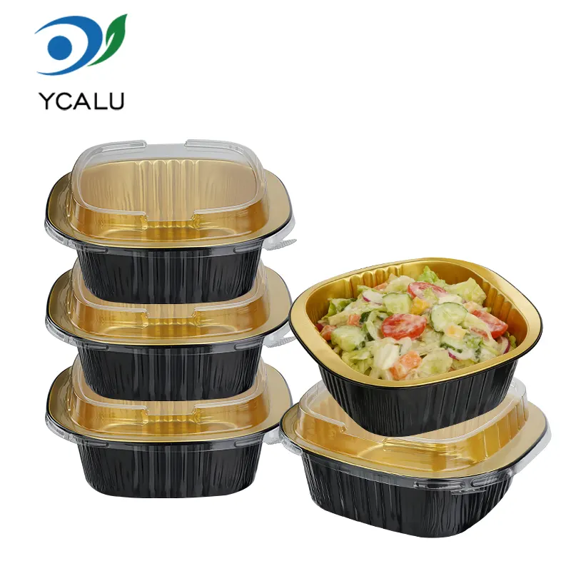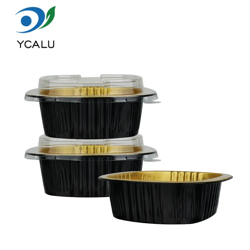 Yunchu Aluminum Foil Supplier's disposable binaural square boxs black gold light-walled aluminium foil containers are made of food-grade aluminium foil foil 8011 . ພວກມັນໄດ້ຮັບການປິ່ນປົວດ້ວຍການຫມູນວຽນແລະຂະບວນການຂ້າເຊື້ອດ້ວຍຄວາມຮ້ອນສູງເພື່ອສ້າງເປັນຊັ້ນ oxide ທີ່ຫນາແຫນ້ນຢູ່ດ້ານ. ພວກມັນບໍ່ມີໂລຫະໜັກ ແລະບໍ່ມີກິ່ນ. ພວກເຂົາເຈົ້າສາມາດຕິດຕໍ່ໂດຍກົງກັບທຸກປະເພດຂອງອາຫານແລະປ້ອງກັນບໍ່ໃຫ້ precipitation ຂອງສານອັນຕະລາຍຢູ່ໃນອຸນຫະພູມສູງ. ບໍ່ວ່າພວກມັນຈະຖືກນໍາໃຊ້ເພື່ອຖືຖ້ວຍຮ້ອນ, ອາຫານເຢັນ, ຂອງຫວານຫຼືນ້ໍາຊອດ, ພວກເຂົາສາມາດປົກປ້ອງຄວາມປອດໄພຂອງອາຫານແລະປະຕິບັດຕາມການຢັ້ງຢືນຄວາມປອດໄພຫຼາຍຢ່າງເຊັ່ນ FDA ແລະ SGS, ເຮັດໃຫ້ທຸກໆການກັດມີຄວາມປອດໄພຫຼາຍຂຶ້ນ. ການອອກແບບຝາຜະຫນັງທີ່ມີແສງສະຫວ່າງຄໍາສີດໍາທີ່ເປັນເອກະລັກທໍາລາຍໂຄງສ້າງ monotonous ຂອງບັນຈຸແຜ່ນອາລູມິນຽມແບບດັ້ງເດີມ. ການເຄືອບສີຄໍາສີດໍາ matte ແລະພື້ນຜິວຂອງກໍາແພງລຽບເຮັດໃຫ້ຄວາມຮູ້ສຶກທີ່ສູງທີ່ສຸດ. ບໍ່ພຽງແຕ່ມີລັກສະນະທີ່ໂດດເດັ່ນ, ມັນຍັງສາມາດສະກັດກັ້ນແສງສະຫວ່າງແລະອົກຊີເຈນທີ່ມີປະສິດທິຜົນ, ຊັກຊ້າການຜຸພັງຂອງອາຫານ, lock ຢ່າງແຫນ້ນຫນາໃນກິ່ນຫອມແລະຄວາມຊຸ່ມຊື່ນຂອງອາຫານ, ຫຼີກເວັ້ນການຖ່າຍທອດກິ່ນ, ແລະຮັກສາລົດຊາດຕົ້ນສະບັບຂອງອາຫານໄວ້ເປັນເວລາດົນນານ. ພື້ນຜິວຂອງກໍາແພງລຽບບໍ່ມີຮ່ອງຫຼືຮອຍຍັບ, ເຮັດໃຫ້ມັນມີເຊື້ອແບັກທີເຣັຍຫນ້ອຍແລະງ່າຍຕໍ່ການເຮັດຄວາມສະອາດ. ມັນຍັງສາມາດປັບຕົວເຂົ້າກັບການປັບແຕ່ງການພິມໄດ້ດີກວ່າ, ຊ່ວຍໃຫ້ຍີ່ຫໍ້ສິນຄ້າເສີມສ້າງການຮັບຮູ້ ແລະຄຸນນະພາບ.