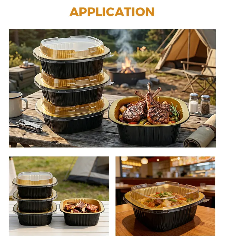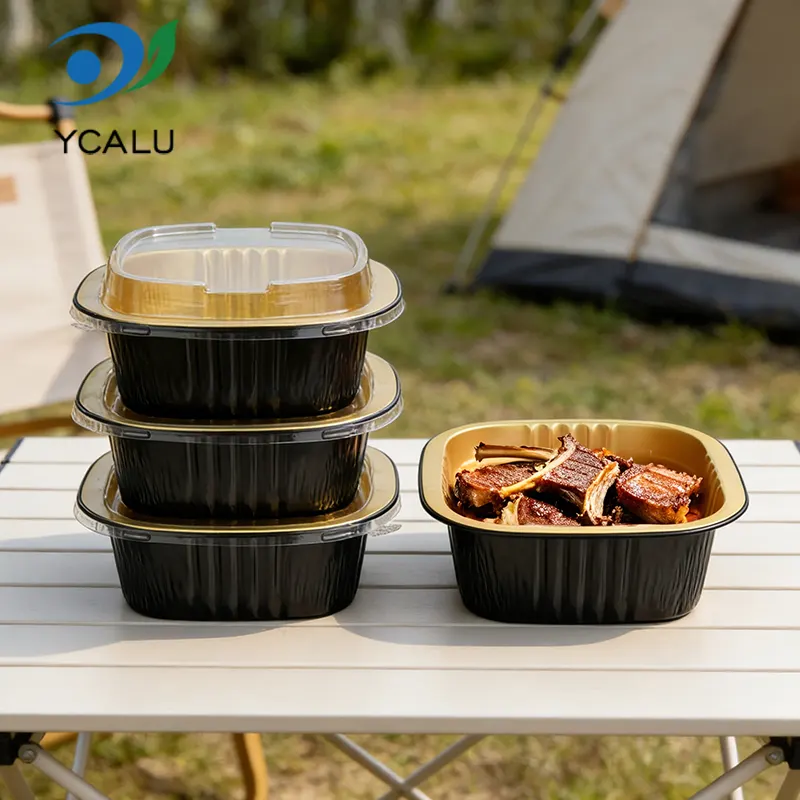 Disposable binaural square box ສີດໍາຄໍາ Aluminum Foil Containers
