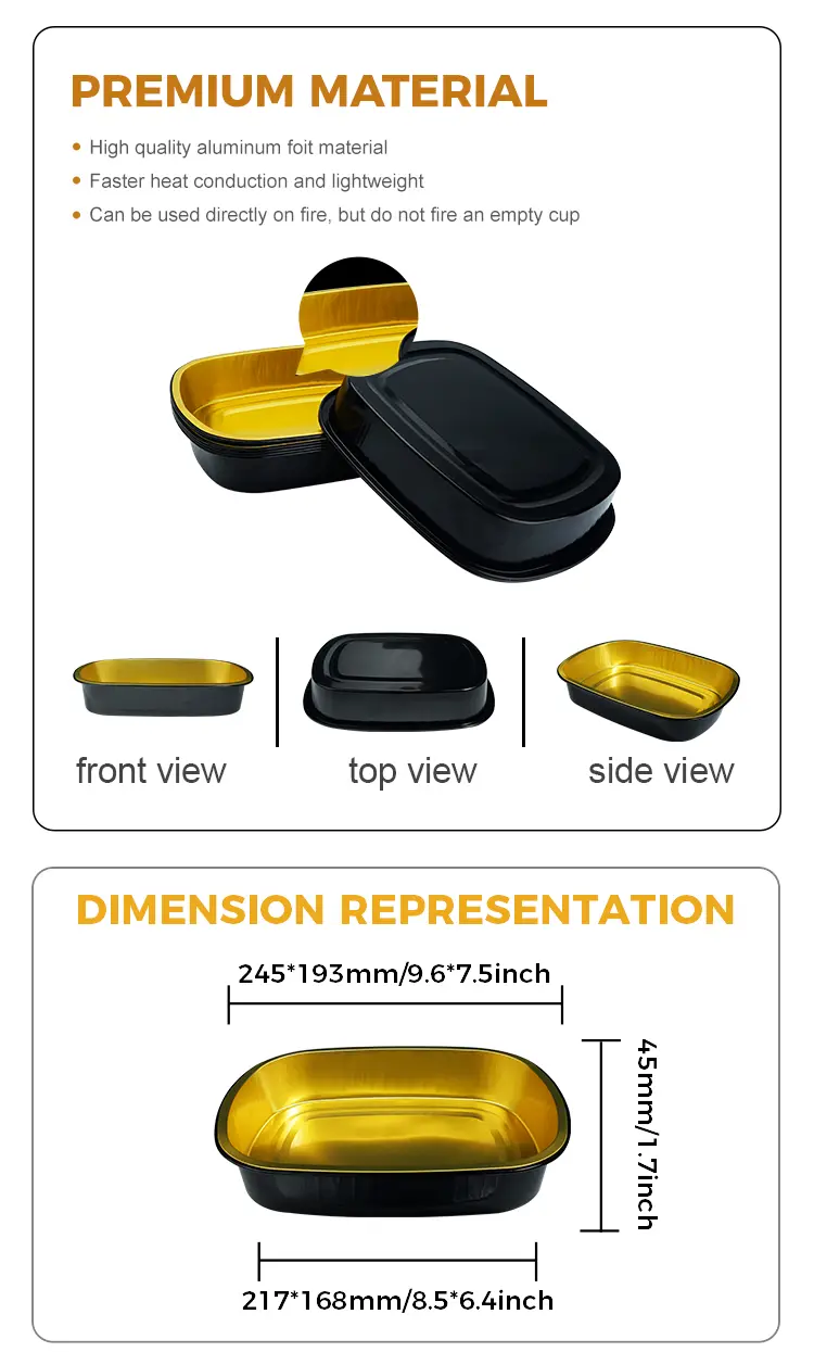 ຖັງບັນຈຸອາລູມິນຽມຂອງຈີນ Yunchu Foil ທີ່ໃຊ້ໃນການຖິ້ມຂີ້ເຫຍື້ອສີດໍາສາມາດໃສ່ໃນເຕົາອົບໄດ້ໂດຍກົງ, ຕູ້ເຢັນບາບີຄິວຫລືຕູ້ເຢັນ. ຜະລິດຕະພັນແມ່ນນ້ໍາຫນັກເບົາແລະສາມາດຖືກມັດໄດ້ຢ່າງງ່າຍດາຍ, ປະຫຍັດເງິນໃນການຂົນສົ່ງ, ຮ້ານອາຫານແລະພື້ນທີ່ໃນຄອບຄົວ. ຜະລິດຕະພັນແມ່ນເຮັດດ້ວຍເຕັກໂນໂລຍີຝາແສງສະຫວ່າງ, ລຽບແລະກະທັດຮັດ. ມັນສະດວກສໍາລັບສັບໃຫຍ່ຫລາຍສໍາລັບສັບພະສິນຄ້າທີ່ຕິດປ້າຍແລະໃສ່ລະຫັດສະແກນ. ຜະລິດຕະພັນມີຄວາມສາມາດຂະຫນາດໃຫຍ່, ສາມາດໂຫລດໄດ້ດ້ວຍອາຫານທີ່ມີອາການຄັນທີ່ສຸດ, ບໍ່ມີການເຮັດຄວາມສະອາດ ປະຕິບັດຕາມ iOS9001 ແລະ SGS ມາດຕະຖານການຕິດຕໍ່ອາຫານ, ຜະລິດຕະພັນ Coba ແມ່ນຖືກເຜີຍແຜ່ທົ່ວໂລກ.