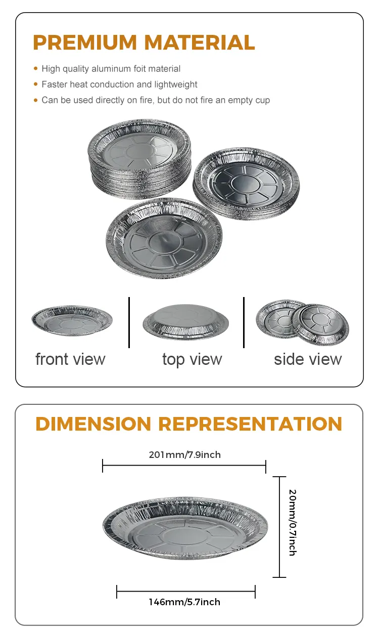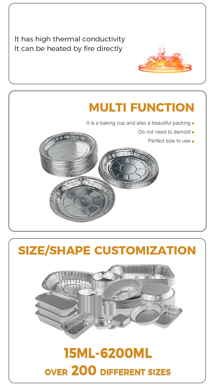 Yunchu Aluminum Foil Disposable Disk Air Fryer Silver Aluminum Foil Container ແມ່ນທັງສຸຂະອະນາໄມແລະເປັນມິດກັບສິ່ງແວດລ້ອມ. ມັນຖືກເຮັດດ້ວຍວັດສະດຸທີ່ຫນາແຫນ້ນແລະທົນທານຕໍ່ການກັດກ່ອນທີ່ບໍ່ຜິດປົກກະຕິໄດ້ງ່າຍແລະສາມາດຕິດຕໍ່ໂດຍກົງກັບອາຫານ. ມັນບໍ່ຢ້ານອຸນຫະພູມສູງ, ບໍ່ຖືກເຜົາ, ບໍ່ເຜົາ, ແລະບໍ່ງ່າຍທີ່ຈະຖິ້ມ. ມັນສາມາດທົນທານຕໍ່ອຸນຫະພູມສູງເຖິງ 250 ອົງສາ C ແລະເຫມາະສົມສໍາລັບວິທີການປຸງແຕ່ງອາຫານຕ່າງໆເຊັ່ນ: ການອົບໃນອຸນຫະພູມສູງ, ເຕົາອົບ, ແລະບາບີຄິວ, ດັ່ງນັ້ນບໍ່ຈໍາເປັນຕ້ອງກັງວົນ. ຂໍ້ມູນຈໍາເພາະຫຼາຍແມ່ນມີເພື່ອຕອບສະຫນອງຄວາມຕ້ອງການອົບທີ່ມີຄວາມຫຼາກຫຼາຍຂອງຂະຫນາດທີ່ແຕກຕ່າງກັນ, ຊ່ວຍໃຫ້ທ່ານສາມາດຮັບມືກັບຄວາມຕ້ອງການການຜະລິດອາຫານຕ່າງໆໄດ້ຢ່າງງ່າຍດາຍ.