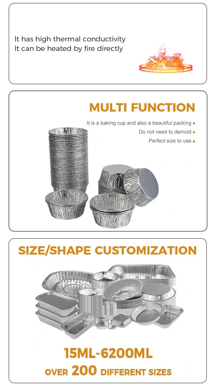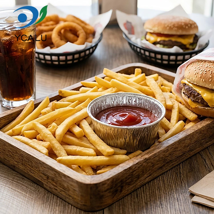 Yunchu Aluminum Foil Supplier Disposable Round Sauce Air Fryer Silver Aluminum Foil Container Food Grade Aluminum Foil Material, ບໍ່ມີກິ່ນ, ບໍ່ມີສານຕົກຄ້າງຂອງໂລຫະຫນັກ, ປະຕິບັດຕາມມາດຕະຖານການຕິດຕໍ່ກັບອາຫານ, ຄວາມບໍລິສຸດສູງແລະຄຸນສົມບັດທາງເຄມີທີ່ຫມັ້ນຄົງ. ເຖິງແມ່ນວ່າມັນເຕັມໄປດ້ວຍນ້ໍາສົ້ມແລະໃຫ້ຄວາມຮ້ອນໃນອຸນຫະພູມສູງ, ມັນຈະບໍ່ປ່ອຍສານອັນຕະລາຍ, ແລະທ່ານສາມາດຮູ້ສຶກປອດໄພຢ່າງສົມບູນເມື່ອຕິດຕໍ່ກັບອາຫານ. ຜະລິດຕະພັນດັ່ງກ່າວໄດ້ຜ່ານການຢັ້ງຢືນລະດັບອາຫານຂອງ FDA ແລະປະຕິບັດຕາມມາດຕະຖານທີ່ກ່ຽວຂ້ອງຂອງ FDA 21 CFR ຢ່າງເຂັ້ມງວດ, ຫຼັງຈາກການທົດສອບການເຄື່ອນຍ້າຍແບບມືອາຊີບແລະການກວດສອບໂລຫະຫນັກ, ເນື້ອໃນຂອງສານທີ່ເປັນອັນຕະລາຍເຊັ່ນ: ຂີ້ກົ່ວແລະແຄດມີນຽມແມ່ນຕໍ່າກວ່າລະດັບຄວາມປອດໄພ, ແລະຄຸນສົມບັດແມ່ນສົມບູນ. ບໍ່​ວ່າ​ຈະ​ເປັນ​ສໍາ​ລັບ​ການ​ນໍາ​ໃຊ້​ເຮືອນ​ຫຼື​ການ​ຄ້າ​, ທ່ານ​ສາ​ມາດ​ເລືອກ​ທີ່​ມີ​ຄວາມ​ສະ​ຫງົບ​ຂອງ​ຈິດ​ໃຈ​. ໃຊ້ມັນເພື່ອແຍກນ້ໍາຊອດສໍາລັບຊີ້ນ, ນ້ໍາສະຫຼັດສໍາລັບຜັກ, ແລະຖ້ວຍສົ້ມສໍາລັບ dumplings. ສ່ວນແມ່ນຖືກຕ້ອງໂດຍບໍ່ມີການ wasting. ມັນຍັງສາມາດຫຼີກລ່ຽງການສົ່ງກິ່ນ, ແລະມັນສາມາດຖືກເກັບໄວ້ໃນຕູ້ເຢັນຢ່າງສະອາດໂດຍບໍ່ຕ້ອງໃຊ້ພື້ນທີ່. ພໍ່ຄ້າທີ່ເອົາໄປເອົາເອງໃຊ້ມັນເພື່ອເກັບນ້ໍາຊອດ, ທີ່ຜະນຶກເຂົ້າກັນແລະຮົ່ວ, ແລະສົ່ງໃຫ້ລູກຄ້າຢ່າງສະອາດ. ບໍ່ວ່າຈະເປັນ ketchup, ນ້ໍາຫມາກເຜັດຫວານ, ຫຼືນ້ໍາຫມາກງາຫນາ, ຈະບໍ່ອາຍທີ່ຈະຮົ່ວໄຫຼແລະເປື້ອນຂອງອາຫານ. ເຖິງແມ່ນວ່າສໍາລັບການກິນເຂົ້າປ່ານອກແລະ camping, ທ່ານສາມາດນໍາເອົາຈໍານວນຫນ້ອຍຫນຶ່ງໄປກັບທ່ານແລະໃຊ້ມັນເພື່ອຖືນ້ໍາຈືດ. ມັນເປັນແສງສະຫວ່າງແລະບໍ່ໃຊ້ເວລາເຖິງພື້ນທີ່. ທ່ານສາມາດຖິ້ມມັນໄດ້ໂດຍກົງຫຼັງຈາກການນໍາໃຊ້. ທ່ານບໍ່ ຈຳ ເປັນຕ້ອງເອົາພາຊະນະທີ່ເປື້ອນຫຼາຍກັບບ້ານ. ມັນສ່ວນໃຫຍ່ແມ່ນກ່ຽວກັບຄວາມງ່າຍແລະບໍ່ມີບັນຫາ.