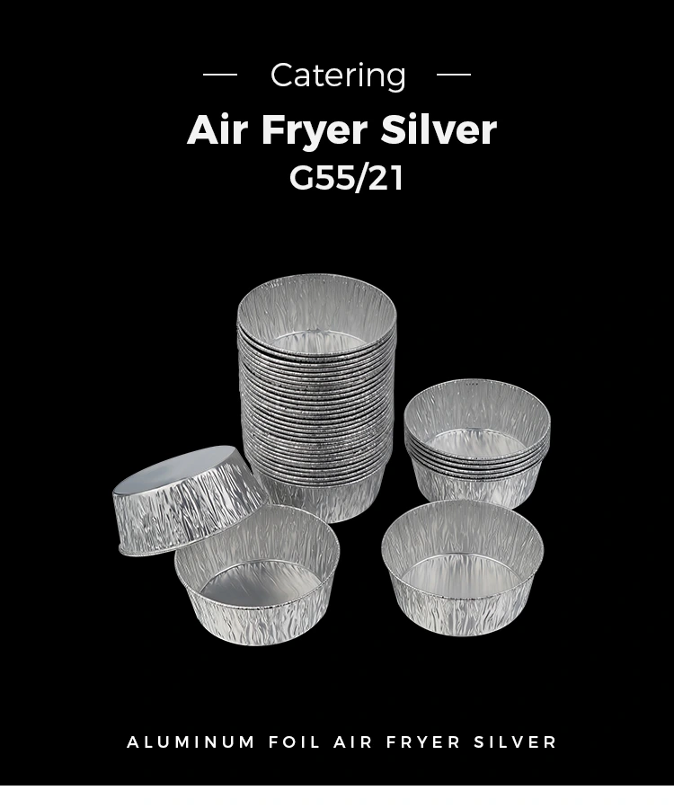 Yunchu Aluminum Foil Supplier's disposable silver round dip air fryer container silver aluminium foil container is designed to be disposable , ຫມົດກໍາຈັດວຽກງານ tedious ລ້າງຖ້ວຍຫຼັງຈາກອາຫານ, ປະຫຍັດເວລາແລະພະລັງງານ; ວັດສະດຸແຜ່ນອາລູມິນຽມສາມາດນໍາມາໃຊ້ຄືນໄດ້, ເປັນມິດກັບສິ່ງແວດລ້ອມແລະບໍ່ມີພາລະ, ຄໍານຶງເຖິງຄວາມສະດວກສະບາຍແລະແນວຄວາມຄິດສີຂຽວ. ຮູບ​ລັກ​ສະ​ນະ​ຂະ​ຫນາດ​ນ້ອຍ​ແລະ exquisite​, ການ​ເກັບ​ຮັກ​ສາ stackable ບໍ່​ໃຊ້​ເວ​ລາ​ເຖິງ​ພື້ນ​ທີ່​, ໄດ້​ຢ່າງ​ງ່າຍ​ດາຍ​ຊ່ວຍ​ປະ​ຢັດ​ພື້ນ​ທີ່​ເກັບ​ຮັກ​ສາ​ຫ້ອງ​ຄົວ​. ບໍ່ວ່າຈະໃຊ້ໃນເຮືອນຫຼືໃນທຸລະກິດ, ຕູ້ຄອນເທນເນີແຜ່ນອາລູມິນຽມສີເງິນທີ່ຖິ້ມແລ້ວນີ້ສາມາດແກ້ໄຂບັນຫາການເກັບຮັກສາແລະການນໍາໃຊ້ນ້ໍາຈືດດ້ວຍວັດສະດຸທີ່ມີຄຸນນະພາບສູງແລະການອອກແບບທີ່ຄິດ, ເຮັດໃຫ້ການປຸງແຕ່ງອາຫານແລະທຸກໆການລວບລວມມີຄວາມເປັນຫ່ວງແລະສະດວກສະບາຍຫຼາຍຂຶ້ນ.