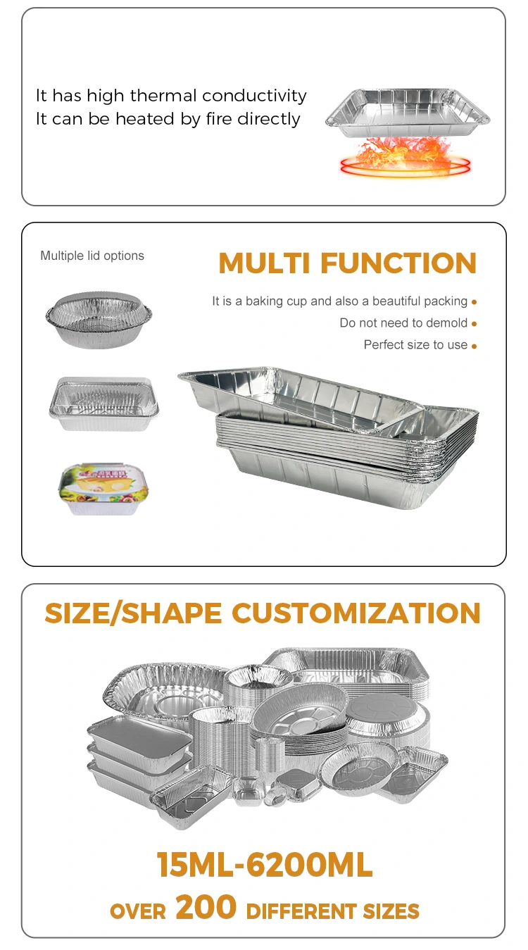 ເຄື່ອງບັນຈຸອາລູມິນຽມຂະຫນາດໃຫຍ່ຂອງ YUNCHU ACIUSUM ADIONSUM ALIONSUM ALIONSUM, ເຊິ່ງເຫມາະສົມກັບເຄື່ອງປຸງແຕ່ງອາຫານຫຼາກຫຼາຍຊະນິດເຊັ່ນ: ເຕົາໄຟ, ປີ້ງໄຟ, ແລະອາຫານທະເລ. ບັນຈຸບັນຈຸອາລູມີນຽມນີ້ຖືກອອກແບບມາເປັນພິເສດດ້ວຍການປ້ອງກັນອາຫານທີ່ຖືກຍົກຂຶ້ນມາເພື່ອປ້ອງກັນອາຫານທີ່ມີປະສິດທິຜົນ ມັນຖືກຜະລິດຈາກອຸປະກອນການອາຫານ -211-0, ມີອຸນຫະພູມທົນທານຕໍ່ຄວາມຮ້ອນສູງເຖິງ 520 ° C, ບໍ່ໄດ້ຂູດຫລືແຕກ, ແລະອຸປະກອນທີ່ຫນາເຮັດໃຫ້ມັນບໍ່ງ່າຍຕໍ່ການຜິດປົກກະຕິ. ປ່ອງ foil ອາລູມິນຽມແມ່ນຫນາທັງຫມົດ, ສະນັ້ນທ່ານສາມາດເລືອກເອົາມັນໄດ້ງ່າຍຫຼັງຈາກປຸງແຕ່ງອາຫານໂດຍບໍ່ຕ້ອງກັງວົນກ່ຽວກັບການຜິດປົກກະຕິໃນເວລານໍາໃຊ້ໃນເວລານໍາໃຊ້ໃນເວລານໍາໃຊ້ໃນເວລານໍາໃຊ້ໃນເວລານໍາໃຊ້ໃນເວລານໍາໃຊ້ໃນເວລານໍາໃຊ້ໃນເວລານໍາໃຊ້ໃນເວລານໍາໃຊ້ໃນເວລານໍາໃຊ້ໃນລະຫວ່າງການນໍາໃຊ້. ການອອກແບບ Hemmed ເຮັດໃຫ້ມັນສະດວກສະບາຍໃນການຈັບແລະແຄມແມ່ນຮູບກົມ, ສະນັ້ນທ່ານບໍ່ຕ້ອງກັງວົນກ່ຽວກັບການຂູດນິ້ວມືຂອງທ່ານ. ຂອບກ້ຽງແມ່ນປະສົມໂດຍລີຝາທີ່ໂປ່ງໃສແລະຝາປິດອາລູມີນຽມ, ເຮັດໃຫ້ພວກມັນເຫມາະສົມກັບແນວພັນປຸງແຕ່ງອາຫານ.