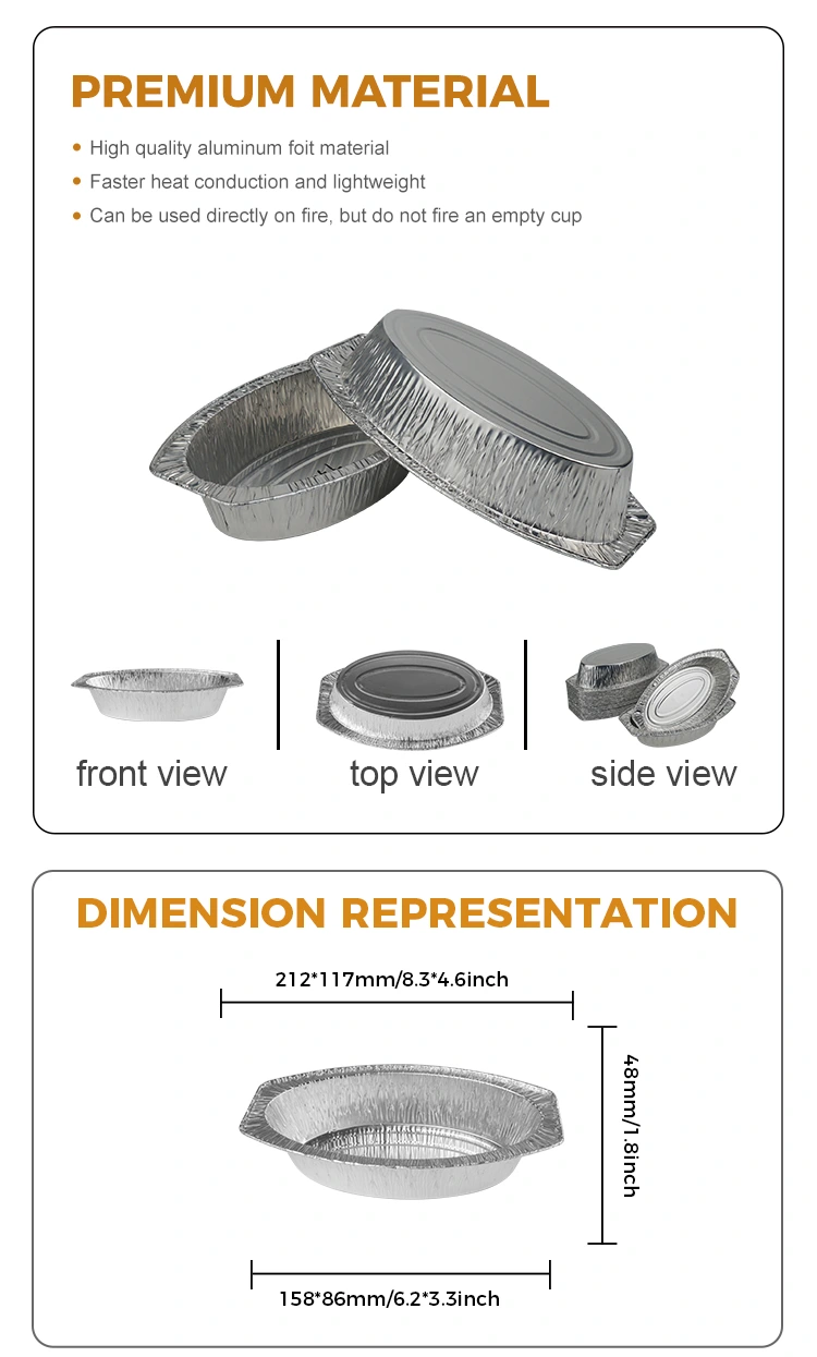 ບັນຈຸອາລູມິນຽມ feuminium foil aving baked baked baked can aving lay can can can accounsers ສາມາດໃຊ້ໄດ້ໂດຍກົງໃນເຕົາອົບຫຼືປີ້ງ, ເຊິ່ງມັນສະດວກຫຼາຍ. ມີນ້ໍາຫນັກພຽງແຕ່ 5,9 ກຼາມ, ມັນງ່າຍທີ່ຈະຢຸດສະງັກ, ປະຫຍັດພື້ນທີ່ສໍາລັບການຂົນສົ່ງ, ການໃສ່ເຮືອນຄົວແລະເຮືອນຄົວ. ຂະບວນການຂອງ Wall Wall ຂອງຜະລິດຕະພັນເຮັດໃຫ້ພື້ນຜິວກ້ຽງແລະກະທັດຮັດ, ແລະຮູບລັກສະນະທີ່ສົດໃສບໍ່ພຽງແຕ່ສວຍງາມແລະສະດວກສະບາຍສໍາລັບສັບໃຫຍ່ແລະສະແກນລະຫັດ.