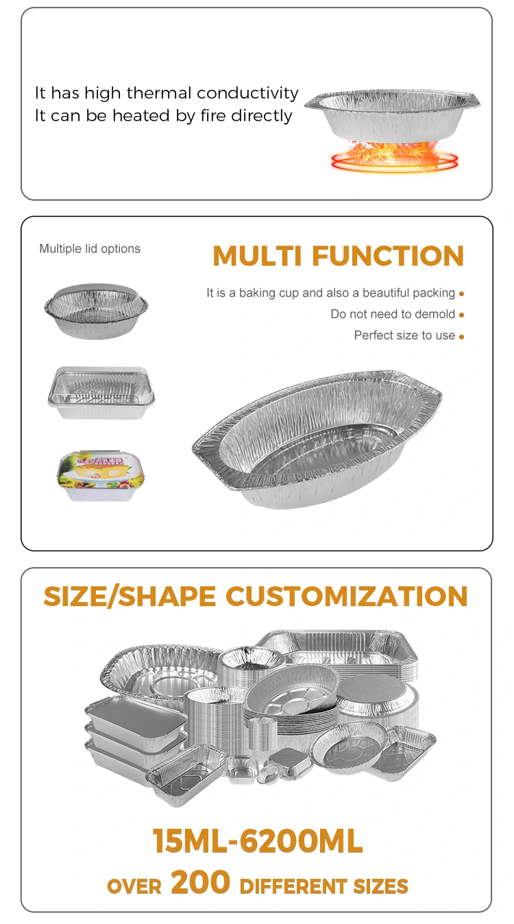 ພາຊະນະນີ້ມີຄວາມສາມາດໃຫຍ່ແລະເຫມາະສໍາລັບເກັບຮັກສາອາຫານແລະອາຫານຫວ່າງປະຈໍາວັນ. ໃນຖານະເປັນລາຍການທີ່ຖິ້ມໄດ້, ບໍ່ຈໍາເປັນຕ້ອງລ້າງ, ເຊິ່ງຊ່ວຍປະຢັດຄ່າໃຊ້ຈ່າຍຫຼາຍ. ຜະລິດຕະພັນດັ່ງກ່າວແມ່ນມີອາລູມີນຽມ foil ແລະຮູບເງົາທີ່ບໍ່ມີອາລູມິນຽມ ໃນເວລາດຽວກັນ, ສິນຄ້າປະຕິບັດຕາມມາດຕະຖານການຕິດຕໍ່ອາຫານ ISO9001 ແລະ SGS ແລະເຮັດໃຫ້ມັນປອດໄພແລະເຊື່ອຖືໄດ້.