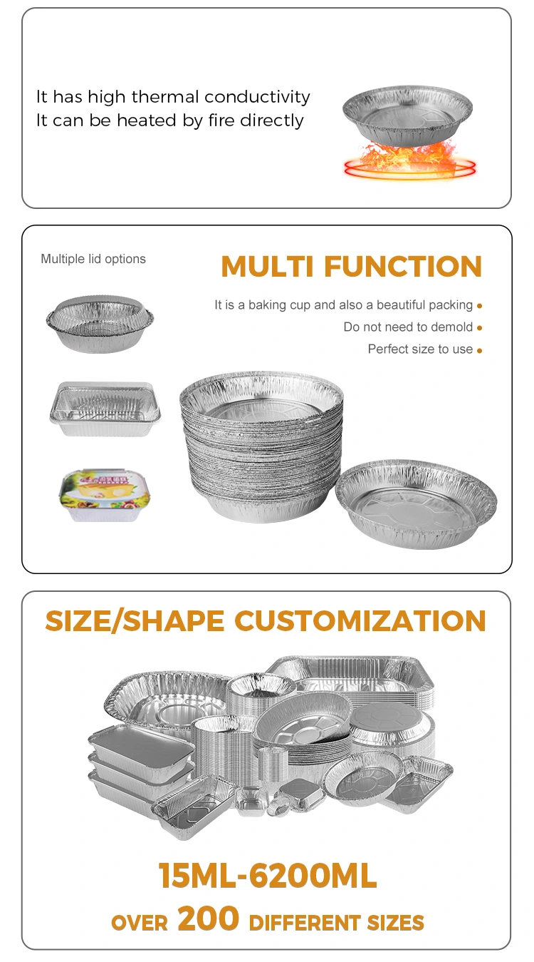 ການຜະລິດຂອງຜູ້ສະຫນອງອາລູມິນຽມຂະຫນາດໃຫຍ່ຂອງ YUNCHU SOLDS FILEWEY ARENT ALENS ALENT ALENT ALENT ALIONS SOLIONSUMS ມີ, ຂະຫນາດຕ່າງໆສາມາດເລືອກໄດ້, ການອົບອຸນຫະພູມສູງບໍ່ມີກິ່ນທີ່ແຕກຕ່າງກັນສໍາລັບອາຫານແລະອາຫານຫວ່າງຂອງມັນ, ເພື່ອຕອບສະຫນອງຄວາມຕ້ອງການຂອງການນໍາໃຊ້ທີ່ຫຼາກຫຼາຍ. ໃນຖານະເປັນຜະລິດຕະພັນທີ່ຖິ້ມໄດ້, ບໍ່ຈໍາເປັນຕ້ອງທໍາຄວາມສະອາດ, ຫຼຸດຜ່ອນຄ່າໃຊ້ຈ່າຍແຮງງານຢ່າງຫຼວງຫຼາຍ. ນອກຈາກນັ້ນ, ຜະລິດຕະພັນແມ່ນມີຝາປິດອາລູມີນຽມແລະຝາປິດທີ່ມີຄວາມຮ້ອນແລະບໍລິສັດທີ່ສາມາດປັບປຸງໄດ້ຕາມມາດຕະຖານຂອງອາຫານການຕິດຕໍ່ iso9001 ແລະ SGS ໄດ້ຮັບປະກັນ ຄວາມປອດໄພດ້ານອາຫານແລະຄຸນນະພາບ.
